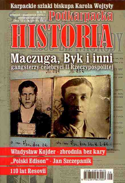 Kolbusz, Władysław Sołtys, Franciszek Bajorek, Jerzy Maczuga, Władysław (1912-1935) Byk, Antoni (1904-1934) Franciszek Józef I (cesarz Austrii ; 1830-1916) Kojder, Władysław (1902-1945) Wojtyła, Karol (1920-2005) Szczepanik, Jan (1872-1926) Słowacki, Petr (?-1588) Prek, Franciszek Ksawery (1801-1863) Kielak, Jan Łobos, Ignacy Józef (1827-1900) Dąbrowiecki, Eugeniusz (1861-1941) Baumberger, Rudolf (1885-1951) Łotocki, Józef (1913-1973) Auschwitz-Birkenau (niemiecki obóz koncentracyjny) Armia Krajowa (AK) Resovia Rzeszów Urząd Bezpieczeństwa (UB) Powszechna Wystawa Krajowa (1894 ; Lwów) Matka Boska Pocieszenia z Jodłówki (obraz) Zabójstwo Przestępcy Więźniowie obozów Ucieczki więźniów II wojna światowa (1939-1945) I wojna światowa (1914-1918) Bitwa 1944 r. o Przełęcz Dukielską Politycy Kardynałowie Kultura przeworska Archeologia Wynalazcy i odkrywcy Astrologia Pisarze polscy Głuchoniemi Więźniowie Samookaleczenie Biskupi Jezuici Żandarmeria wojskowa Nauczyciele PRL Podkarpacie Północne Rzeszów (woj. podkarpackie ; okolice) Januszkowice (woj. podkarpackie) Grzęska (woj. podkarpackie, pow. przeworski, gm. Przeworsk) Jodłówka (woj. podkarpackie) Jasło (woj. podkarpackie) Korczyna (woj. podkarpackie, pow. krośnieński, gm. Korczyna) Krosno (woj. podkarpackie) Przemyśl (woj. podkarpackie) Medynia Głogowska (woj. podkarpackie) Galicja (kraina historyczna) Lubenia (woj. podkarpackie, pow. rzeszowski, gm. Lubenia) Strzyżów (woj. podkarpackie) Lwów (Ukraina) Dąbrowa Tarnowska (woj. małopolskie) Jeżowe (woj. podkarpackie) Rzeszów (woj. podkarpackie) Góra Ropczycka (woj. podkarpackie) Sędziszów Małopolski (woj. podkarpackie)